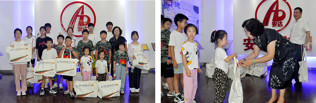 自由活動(dòng)期間,安達集團工作人員帶領(lǐng)孩子們參觀(guān)企業(yè)產(chǎn)業(yè)展廳和文化展廳。通過(guò)參觀(guān),孩子們進(jìn)一步感受安達集團的文化底蘊與創(chuàng )新精神,對父母所在企業(yè)的認同感愈發(fā)濃厚。為鼓勵孩子們的愛(ài)心捐款、肯定他們的慈善之心,郝鳳榮理事長(cháng)為每一位捐款的小朋友發(fā)放愛(ài)心禮包。